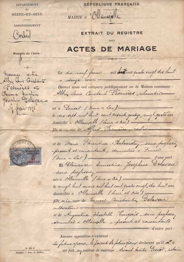 19 février 1898 - Albin Fesnières et Clémence Delavau