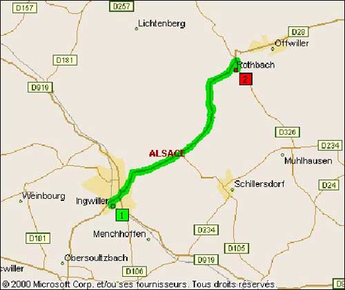 5 mars 1940 : Nous partons vers le front. 2 nuits et 1 jour de train. Arrivés à trois heures du matin en gare d' Ingwiller (Bas Rhin -Arrondissement de Saverne) - Nous allons à pied (7 km) jusqu'à Rothbach (Bas Rhin - Arrondissement de Haguenau).