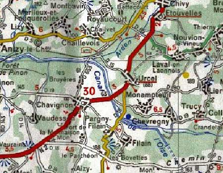 A deux heures de l'après-midi, nous partons en colonne par un pour le canal de l'Ailette, devant Chavignon. |