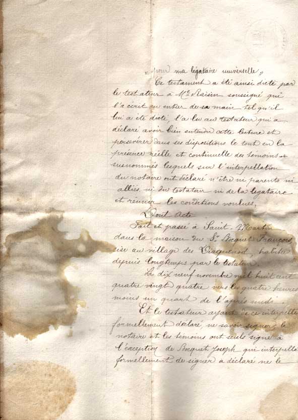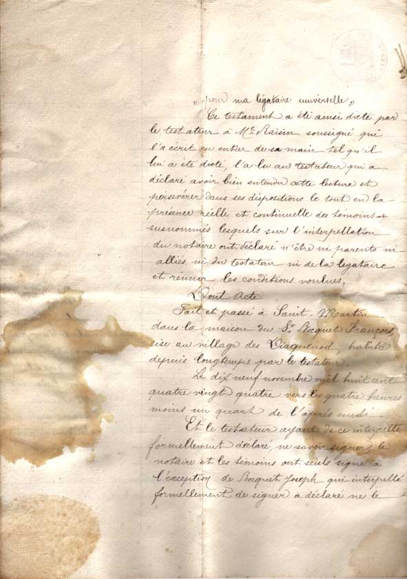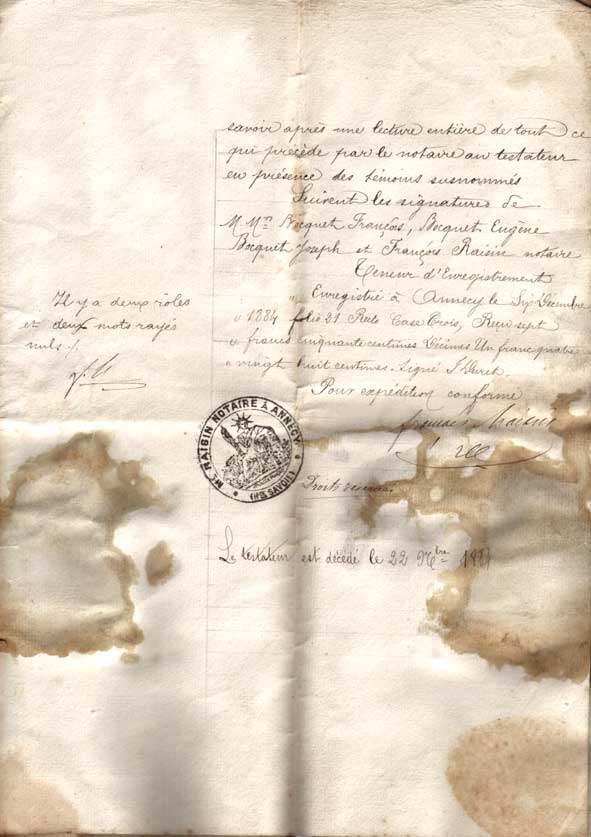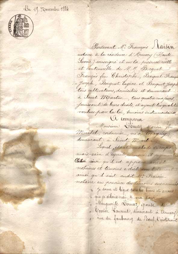 Testament de Marin Déruaz à sa soeur Marguerite Déruaz (épouse de Laurent Terrier) - 19 novembre 1884.